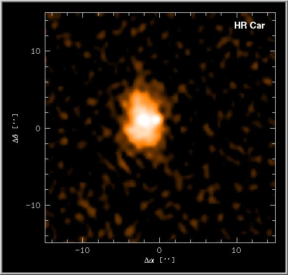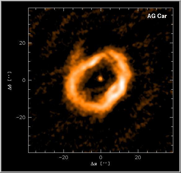 A Homunculus-köd a 150 évvel ezelőtti óriás kitörés maradványa. A két bipoláris lebeny átmérője körülbelül 0.2 pc. A bal alsó (délnyugati) lebeny felénk mozog nagyjából 600 km/s-os sebességgel. A két lebeny között egy struktúrált egyenlítői kiáramlás is megfigyelhető. (A HST felvétele)