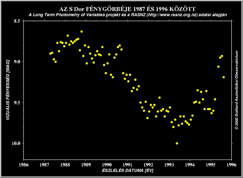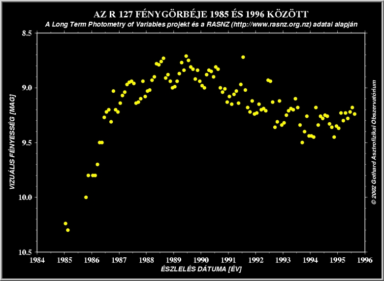 Az AG Car fotometriai változása 1981 és 2000 között.