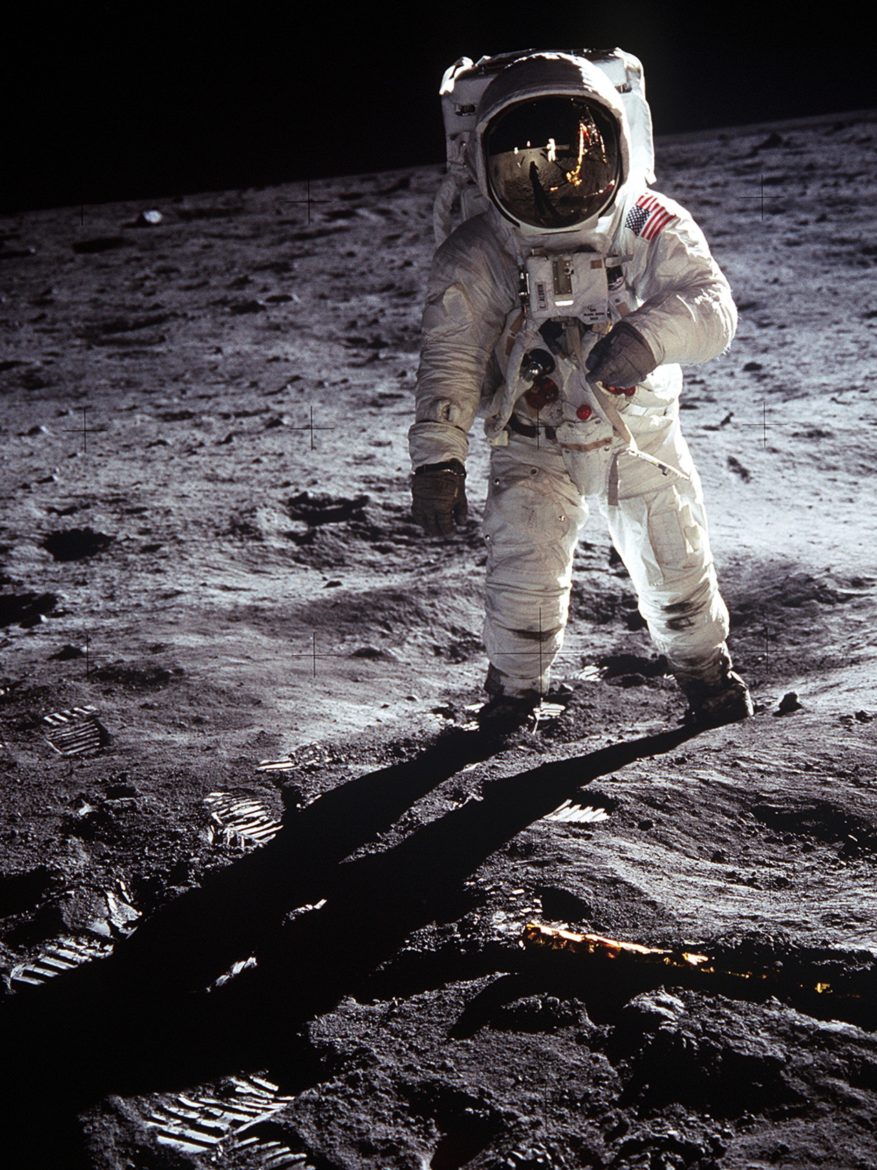 A John Fitzgerald Kennedy elnök által a Szputnyik 1 orosz űrszonda által okozott sokkra 1961-ben válaszként megfogalmazott ambíciózus cél megvalósítása - miszerint az Egyesült Államok még az évtized vége előtt embert küld a Holdra - Neil Armstrong, Edwin Aldrin és Michael Collins űrhajósokra várt. Az őket szállító Apollo 11 űrhajó 1969. július 16-án emelkedett a magasba a floridai Cape Canaveral űrközpontból. Három napos utazás után a Hold körüli pályára álltak, majd július 20-án 17:44 világidőkor az Armstrongot és Aldrint szállító Eagle nevű holdkomp levált a Columbia parancsnoki modulról, majd néhány keringés és ereszkedés után a Nyugalom tengerében 20:17 világidőkor leszállt kísérőnk felszínére. Armstrong, azóta szintén szállóigévé vált jelentése a központnak: "Houston, Tranquility Base here. The Eagle has landed". (Houston, itt a Nyugalom tengere bázis. A Sas leszállt.)