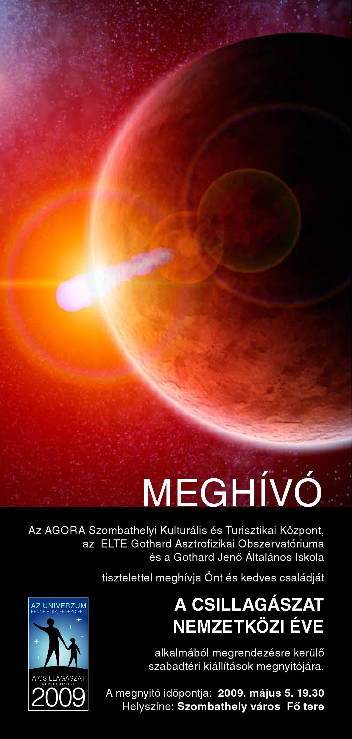 A következőkben a Csillagászat Nemzetközi Éve 2009 programsorozat keretében Szombathelyen, illetve Vas megyében megrendezett eseményekről készített fotóinkat adjuk közre.