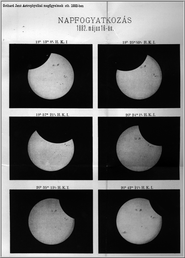 Gothard felvételsorozata az 1882-es részleges napfogyatkozásról.