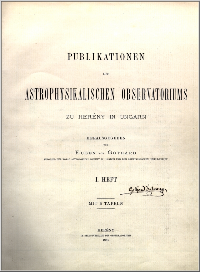 1885-től Gothard csaknem teljesen felhagyott a vizuális észlelésekkel és a Herényi Obszervatóriumban áttértek a kor új technikájára, a spektrográfia és az asztrofotográfia művelésére. 1885-ben felvételt készített az Andromeda galaxisban fellángoló szupernóváról.