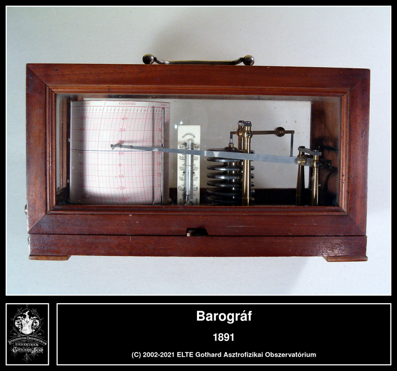 A légnyomás változó értékeit folyamatosan és önműködően óraművel mozgatott papírszalagra rögzítő készüléket 1891-ben vásárolta Gothard Jenő a párizsi Richard Freres cégétől.