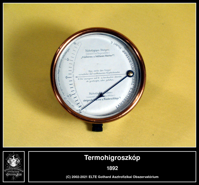 A levegő nedvességtartalmának mérésére szolgáló eszközt a Gothard fivérek készítették a herényi obszervatórium 1883. január 1-jén megnyílt meteorológiai állomása részére.