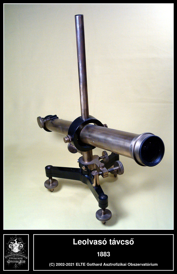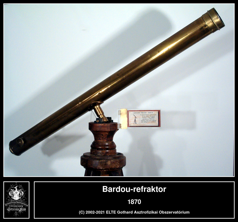 A párizsi Bardou-gyártmányú, 8 cm nyílású távcsövet Konkoly Thege Miklós ajándékozta 1880-ban, Gothard Jenő ezzel végezte első csillagászati észleléseit.