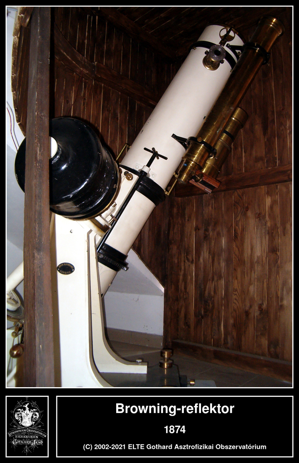A 26 cm nyílású és 196 cm fókuszú Newton-távcsövet a londoni Browning cég építette Konkoly Thege Miklós ógyallai obszervatóriumának. Gothard a műszert 1881-ben vásárolta meg.