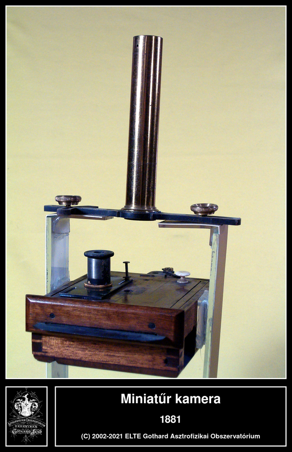 A 15,8 mm nyílású Steinheil-objektívvel szerelt, 1881-ben Konkoly Thege Miklóstól beszerzett miniatűr kamerával végezte Gothard Jenő első asztrofotográfiai és spektrográfiai kísérleteit.