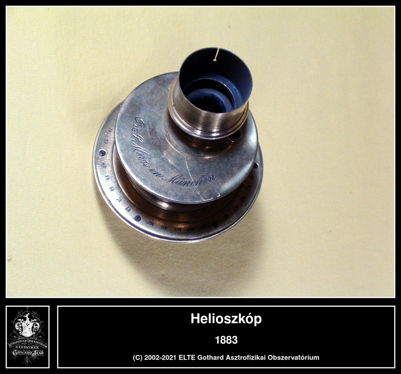 A napfény erősségének tetszés szerinti csökkentésére alkalmas polarizációs okulárt Gothard Jenő 1883-ban szerezte be a müncheni G. u. S. Merz cégtől.