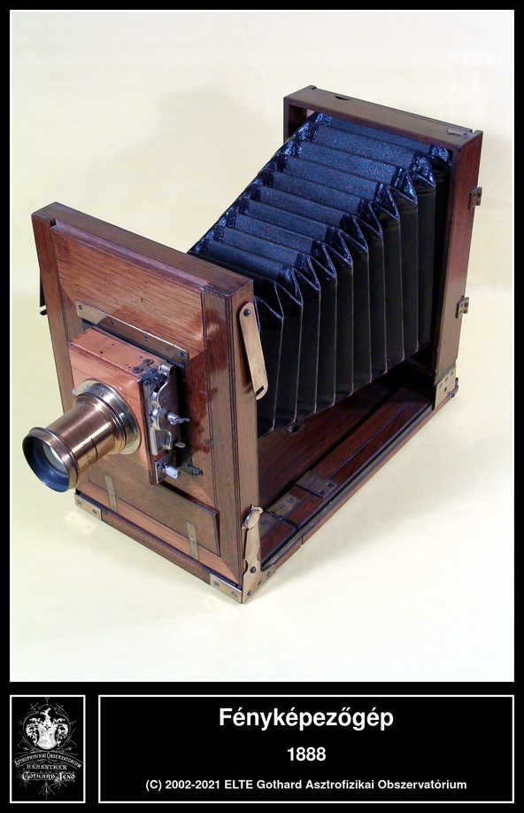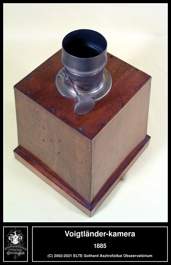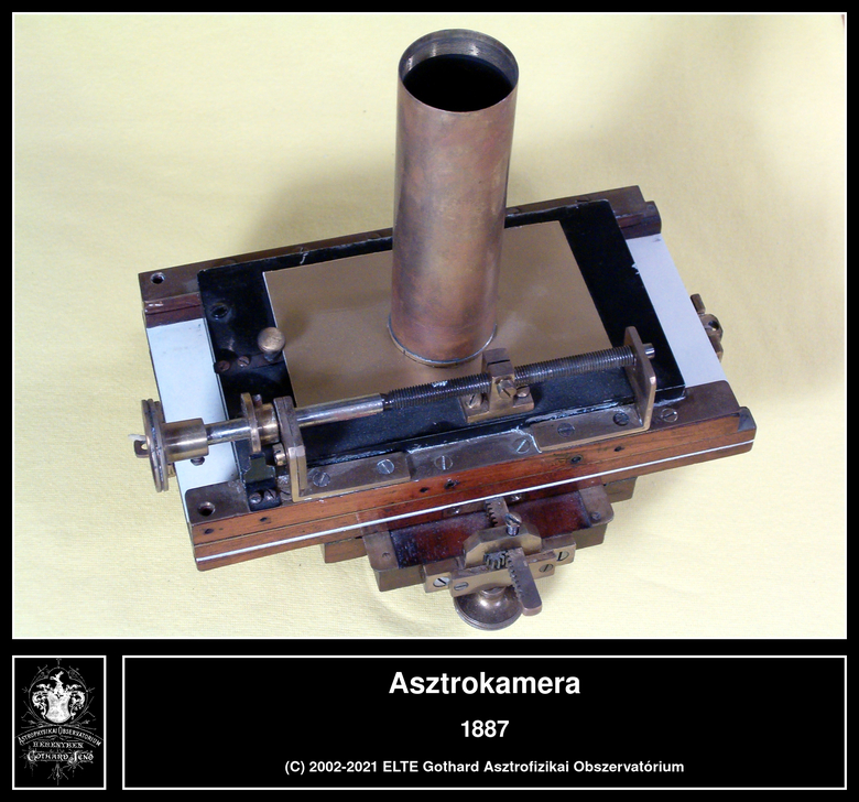 A Gothard Jenő által összeállított 9 cm x 12 cm formátumú csillagászati fotókamera 43 mm nyílású Voigtländer-féle objektívje.