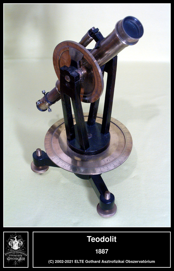 Csillagászati és geodéziai (földmérési) alkalmazásokban vízszintes és függőleges szögek nagy pontosságú mérésére szolgáló műszer, a chemnitzi Max Kohl cég gyártmánya.