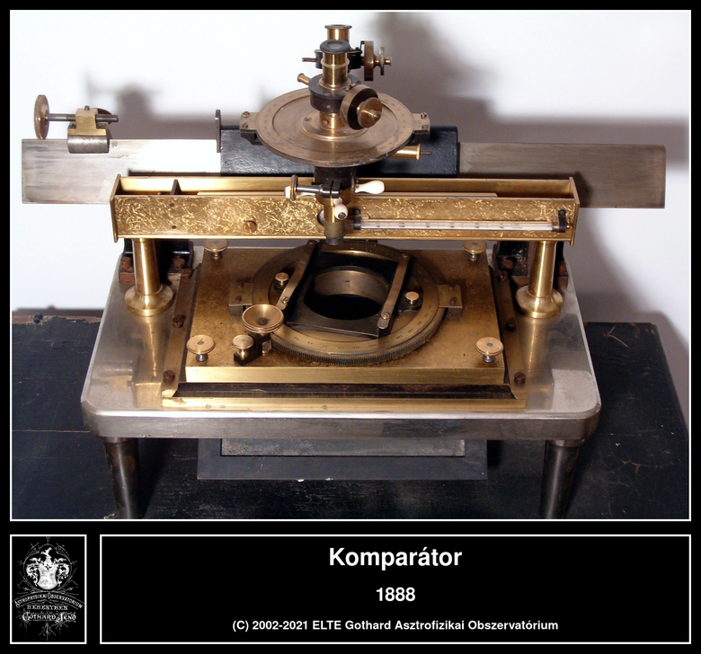 A nagy pontosságú mérőműszert színképvonalak hullámhosszának kimérésére, valamint fotólemezen rögzített csillagok pozíciójának meghatározására építette Gothard Jenő.