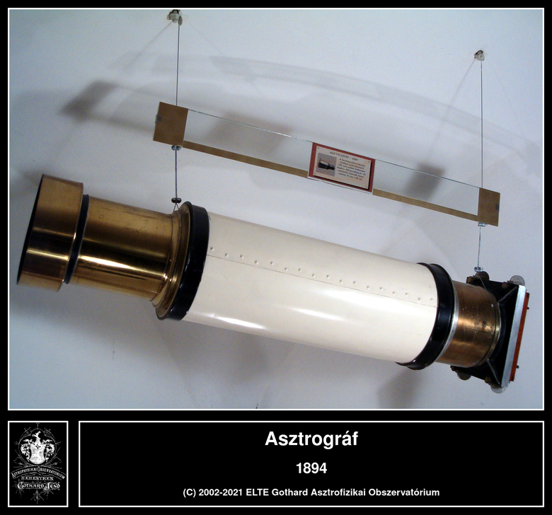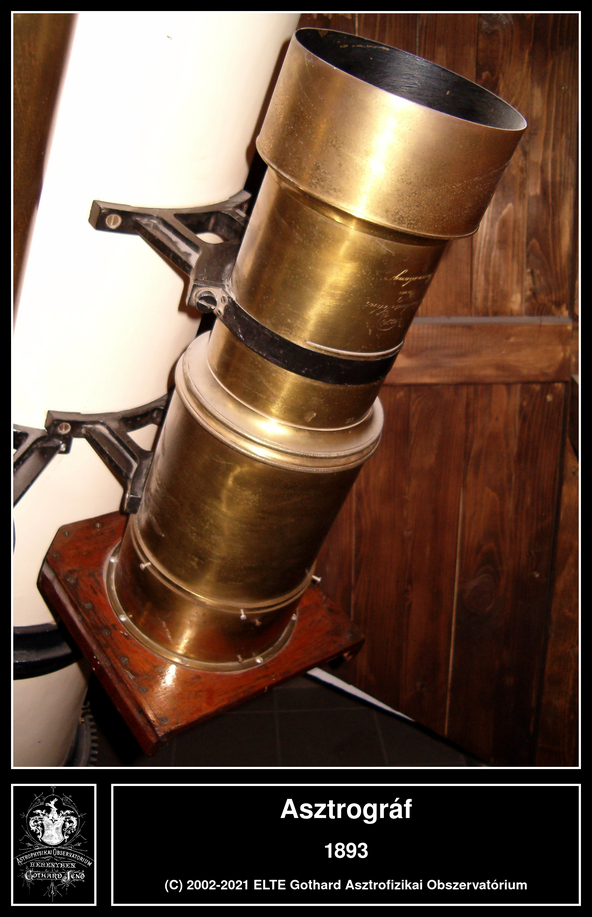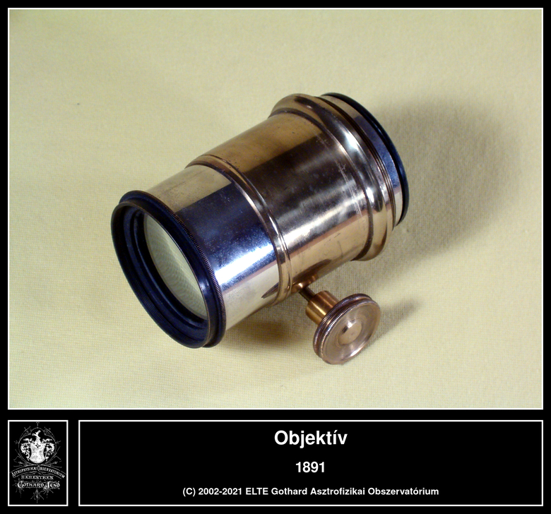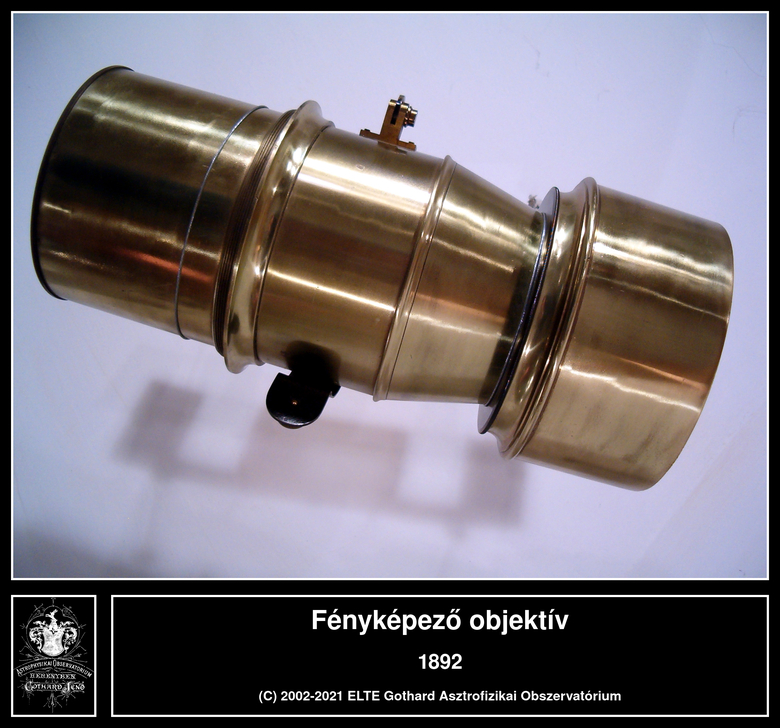 A 155 mm nyílású, három lencséből álló nagyméretű objektívet asztrofotográfiai célokra, új technikák tanulmányozására szerezte be Gothard Jenő 1892-ben.